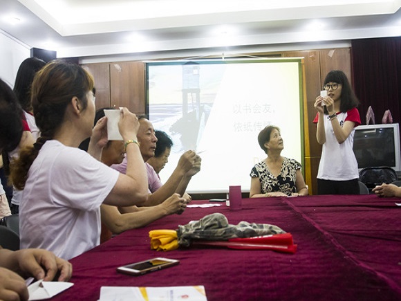 7月10日上午,教师院“人间重晚晴——老年大学暨老年人关怀交流活动”暑期社会实践队,于桃李王巷社区老年活动室与社区老年人顺利开展小队第五项实践活动——“ 以书会友,以纸传情”。
