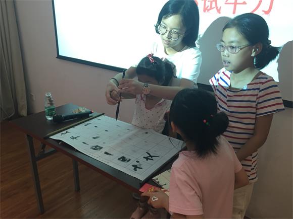 7月8日下午,“博古通今话四艺”暑期实践小队在凤凰国际书城开展有关书法的小讲堂,受到许多小朋友和家长的喜爱,活动取得圆满成功。