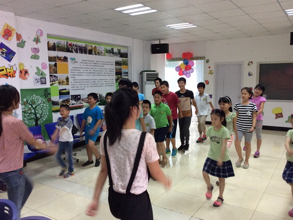 经过了一个上午的接触,小队成员与同学们之间的关系更加亲密,下午的活动也就开展得更加顺利。首先,小队成员周雨菲和黄春晓带领同学们学习舞蹈《小苹果》,熟悉的音乐,欢快的动作,同学们跳得不亦乐乎,其他小队成员也受到了欢快的氛围的影响,不禁也跟着一起扭动起来。舞蹈学习结束后,稍事休息,接下来便是切磋棋艺,小队成员陪着同学们下棋,围棋、象棋、五子棋、飞行棋,一应俱全。小队成员和同学们都积极思考,谨慎落子,秉着“友谊第一,比赛第二”的原则,在一片欢乐和谐的气氛中散发着智慧的光芒。