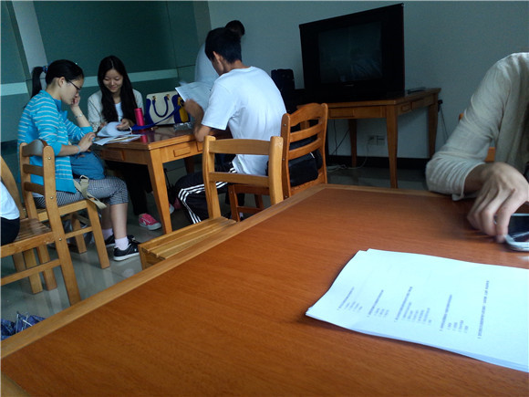下午一点,志愿者们开始进行问卷调研工作。五个小队共十五人分别采用入户调查、街头宣传、商户采访、街岗访问等方式,两个小时内共完成了一百份调查问卷。接着,志愿者们利用宣传单页等方式向当地村民宣传之后四天将要在社区服务中心举办的各项精彩活动,并邀请村民参与。最后,志愿者们在社区服务中心与社区工作人员一同进行调查问卷的分析工作,并对此展开激烈讨论。
