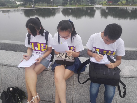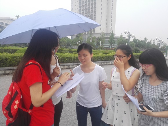 正值暑假的南京财经大学没有很多同学,给本次调研活动带来了诸多不便,调研活动开始并不是如预期的效果。经过简短的会议,小队成员采取了分头行动的方式,分发调研物资之后,分散在校园的各个角落,寻找同学帮忙,进行问卷的填写。各成员在校园的各主行干道、教室以及宿舍附近寻找来往同学帮忙,调研活动得以顺利展开。