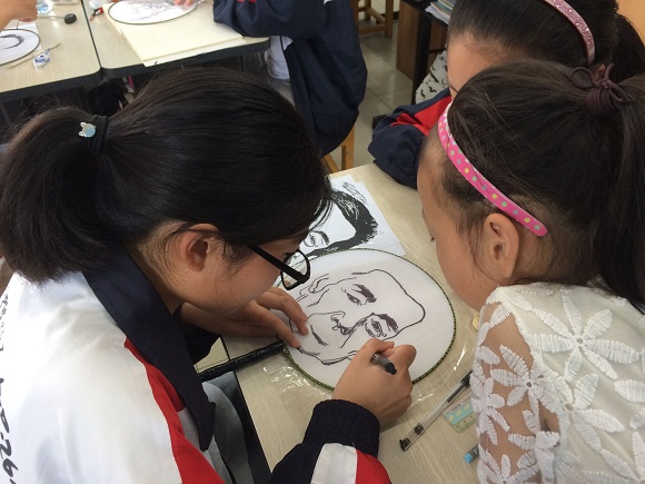 最后,同学们拿出画笔,在小队成员事先准备的空白宫扇上开始了绘画创作。同学们或是用素描方式或是用水彩方式,纷纷怀着对抗日英雄、民族伟人的崇敬之情,勾勒出心目中的伟人英雄的英姿,用手中的画笔向英雄致敬。