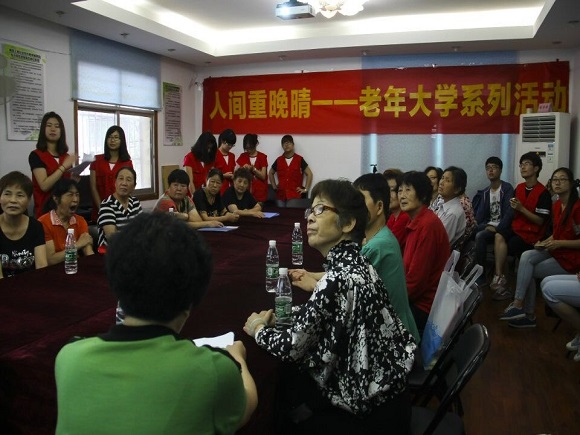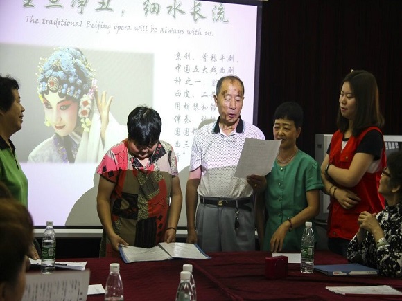 7月7日上午,“人间重晚晴——老年大学暨老年文化交流活动”暑期社会实践小队全体成员来到桃李王巷社区老年活动室继续进行第四天的实践活动:赏京剧,谈养生。