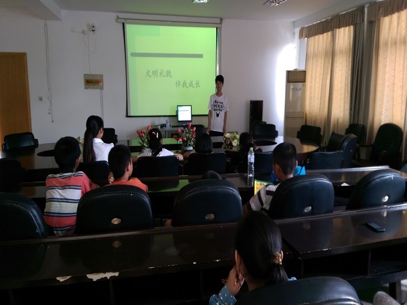 首先由黄丹同学讲解动物世界,带领孩子们领略了多姿多彩的自然世界,让孩子们为角马那种为了生存而不断拼争的精神而震撼,为珍稀动物的渐渐绝灭而惋惜,为羚羊迁徙的壮阔而惊叹。接着马振兴同学带领孩子们学习中华传统文明礼仪,让孩子们认识到文明礼仪无处不在,一个人的举止、表情、谈吐、接人待物等方方面面,都能展示一个人的素质修养,并且不能够忽视生活中的细小之处,力求做好每一件事。然后刘晓勇给孩子们展示了神秘的天文世界,有精美绝伦的猎户座、金牛座、双子座、麒麟座等星座的图片,有神奇的日食、月食现象原理的讲解,有刘晓勇同学自己拍摄的星空图片。最后小组成员还与孩子们共同玩起了游戏,让孩子们在学习知识的同时,劳逸结合,放松身心。