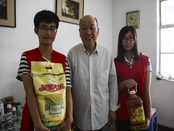 与你同行,满满温情。课堂在一段温馨的手语操后结束,小队队员携带水果、油米去来到社区中老年人的家里,看望并慰问孤寡、残疾老人,与他们一起聊天、包饺子。老人们见小队队员的到来,也十分感动,流露出欣慰的笑容。小队还有幸慰问了一位年近百岁的共产党老党员,他多次被评为市劳模、省先进工作者,是我们党学习的榜样,是不朽的灵魂。