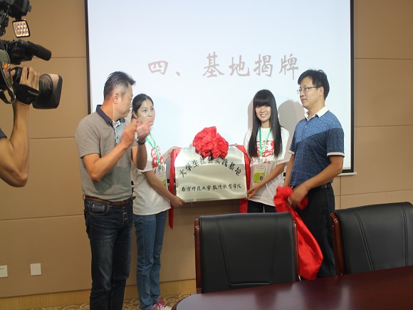 社会实践基地”协议,郑重地盖上了己方的公章。陈世海馆长和江胜尧书记为江宁制造博物馆暑期社会实践基地挂牌。