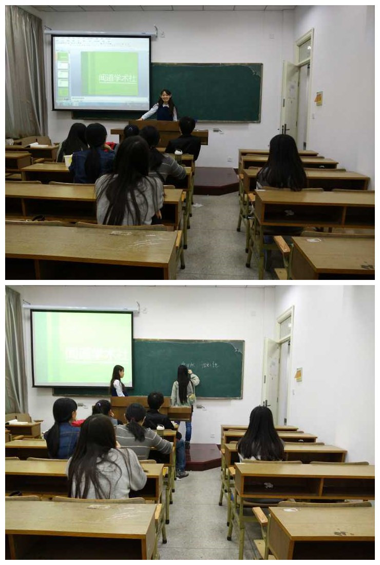 闻道学术社在随园校区电教楼106室举行了入学以来首次社团活动。本次活动旨在介绍社团基本情况、商讨本学期活动形式以及加强社员间的相互联系,由闻道学术社社长魏思佳主持本次活动。
