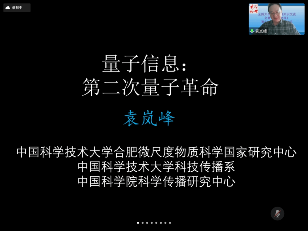 下午的会议主要是两个特邀报告和新一届编委的工作研讨。第一个报告是北京大学博雅特聘教授,物理学院副院长徐莉梅教授做的《复杂无序系统中的序——2021年诺贝尔物理学奖获奖工作介绍》的报告。主要介绍了意大利科学家乔治·帕里西因为“发现了从原子尺度到行星尺度的五力系统中的无序和涨落的相互作用”而获得了诺贝尔物理学奖的工作。最后,中国科学技术大学合肥微尺度物质科学国家实验室副研究员,中国科学技术大学科技传播系副主任袁岚峰做了《量子信息原理与技术》的报告。近年来,量子成为热词,却少有人能真正理解量子。报告从“量子是什么”出发,指出量子信息是量子力学与信息科学的结合;讲述了量子力学的“三大奥义”:叠加、测量、纠缠;介绍了量子计算的原理与成果,并列举了量子通信的例子。报告幽默风趣,通俗易懂,使同学们了解了量子信息的原理与前沿应用,以及该领域内我国在世界范围的领先地位。