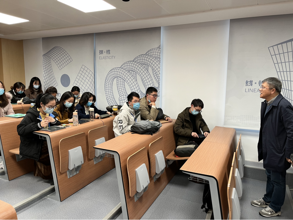 两节公开教学汇报课后,陆建隆教授组织了评课研讨活动,参加听课的三届“卓越教师”计划物理研究生对于两位老师的授课过程进行了评价研讨,实习导师代表张文理老师对实习老师的教育实习工作做了充分肯定。陆建隆教授对于本次活动进行了总结,同时,对于附中老师的全力指导与支持表达了由衷的感谢,并就目前三新(新课标、新教材和新高考)背景下如何落实好基于核心素养的教学进行了探讨。