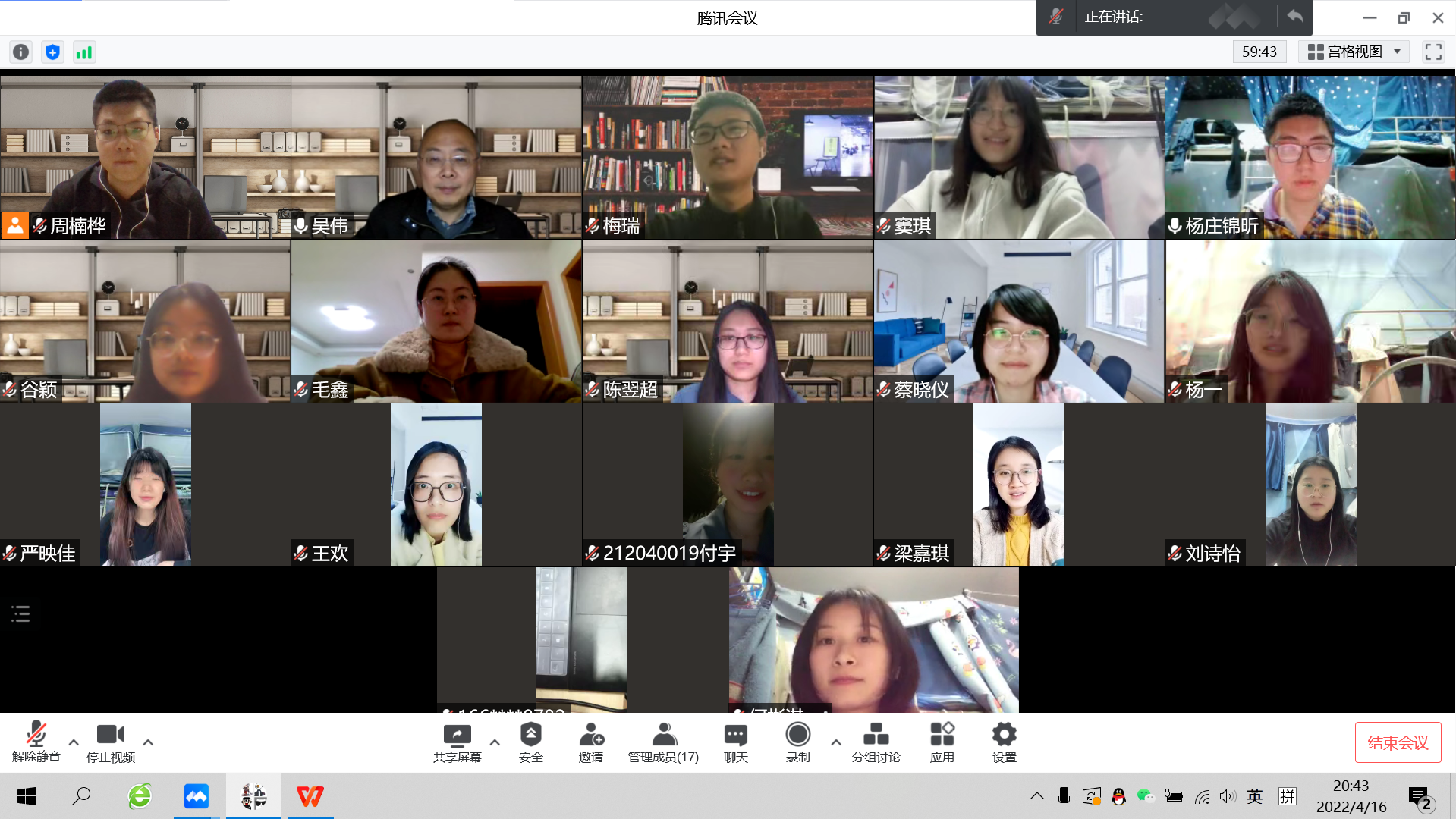 心系学生,关怀守护,以身实践彰显“厚生”之行。截止4月21日,陈娴、何善亮、黄桂芹、黄晓琴、刘小贤、陆建隆、庞明勇、陶进、王巍、吴伟、周海忠、庄伟共12名导师均已开展团队的线上座谈交流。借助各导师组“云谈心”的特殊形式及时疏导70余位物理研究生的焦虑情绪,导师们也将谈话重心由“学术指引”转向“心理辅导”“生活向导”,并结合亲身经历提示学子们如何平衡科研与生活,希望同学们能够在疫情期间更好地调节学习生活的节奏,在学习科研之余不忘健康运动,勉励同学们要以积极的心态面对疫情影响。一份份沉甸甸的问候,抚慰学子们不安的心,获得同学们的一致好评,被称为“来自春天的关怀”。