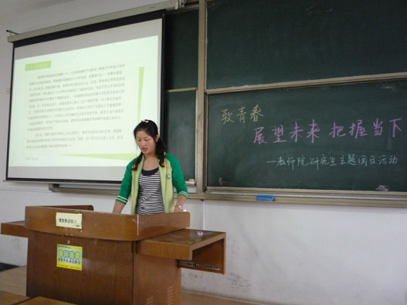 活动中大家欣赏了电影《致青春》的片花和主题曲,在影视作品中,同学们品味到了青春的美好与苦涩。通过观后感的讨论,同学们从青春的意义、青春的本色以及青春该如何度过三个方面深化了感性和理性认识,产生了共鸣。有同学感慨:青春应该是疯狂的,丰富多彩,想做就做的,而现实中的自己“两耳不闻窗外事,一心只读圣贤书”,实在是遗憾!