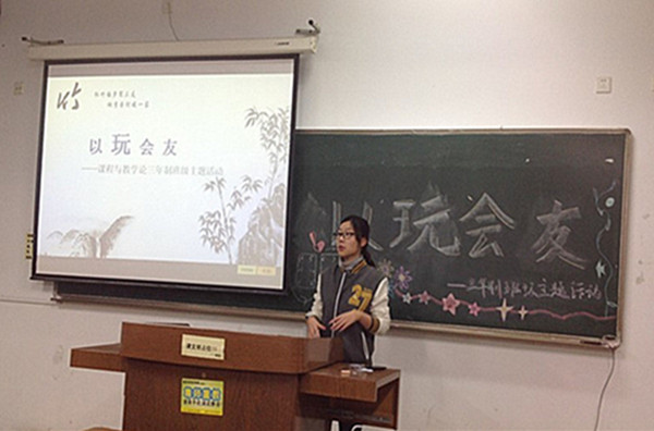 本次活动按专业分三组进行,语文、历史、地理为一组,英语、化学、生物分为一组,政治、数学、物理专业的同学们为一组。由于不同专业同学之间接触较少,为了打破陌生同学之间的尴尬,各组的团辅活动都精心设计了自我介绍的游戏环节。“大风吹小风吹”等常规热身游戏一改以往自我介绍的单调,让同学们在轻松愉快的氛围中迅速熟络起来,牢记彼此,缩短了不同专业同学之间的距离感。