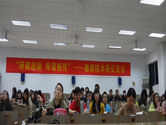 4月2日,晚六点半,教师教育院研究生于南师大仙林校区学明楼502教室展开了主题为"师道相传,研路相助"的本研交流会。为了有效帮助处于考研迷茫期的大三学子,教师院研究生团总支在辅导员王鑫老师的指导下,经过深思熟虑,反复修改最终成功策划了此次活动。为了增加针对性,节省时间,交流会分两场进行,本次交流会为物理、化学、地理、语文专场,共8名研究生参加了此次讲座。讲座内容主要针对本科生事先罗列的各项问题展开,这吸引了众多院内外学弟学妹。
