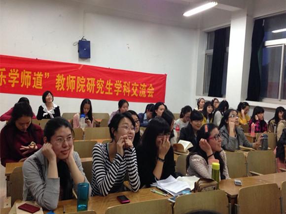 研究生语文与生物专业在学明楼303教室开展了主题为“博学通理 乐学师道”的文理交流会。为了增进不同学科之间的交流,有效促进综合性学习,教师院研究生团总支在辅导员王鑫老师的指导下精心策划了五场文理交流会,这是最后一场交流会。由于两专业交集较少,活动宣传期,就有不少同学对此表示出浓厚的兴趣。