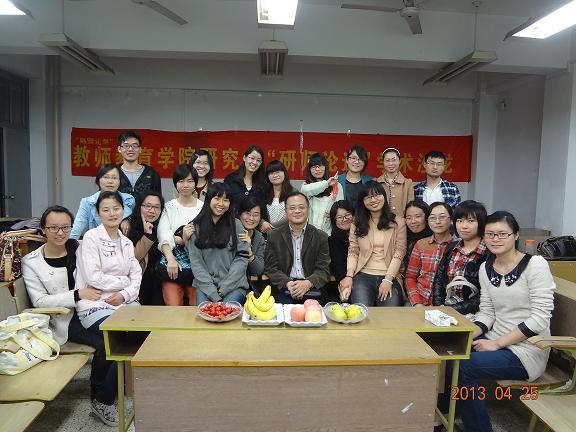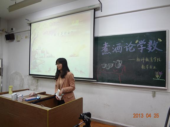 2013年4月25日,“随园论剑”之教师院“研师论道”学术沙龙数学专场在南师大仙林校区学明楼(J3)203圆满举办。本次活动邀请了博彩网址大全-博彩网址导航 教授、硕士生导师马复老师作为嘉宾。院研究生会代表宋青同学以及12级学科教学(数学)专业的全体同学参加了本次活动。