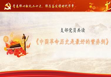 传承,激活党员队伍新活力。支部党员共读《中国革命历史是最好的营养剂》,以红色经典重温党的光辉历程,在读与思、说与听中重温中国共产党波澜壮阔的百年征程,深刻领悟共产党人敢为人先、不怕牺牲、无私奉献的精神,共同感悟红色精神,赓续红色血脉,传承红色基因。