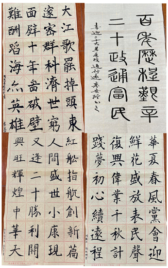笔墨,续写征程新华章。支部成员发挥师范“三笔”特色,以纸笔将铿锵有力的誓言化作一行行朴实的文字,抒发知党、爱党、颂党的真挚情感,表达拥护党的领导、永远跟党走的信念和决心,通过“真心话”充分展示师院学子忠诚、干净、担当的形象。