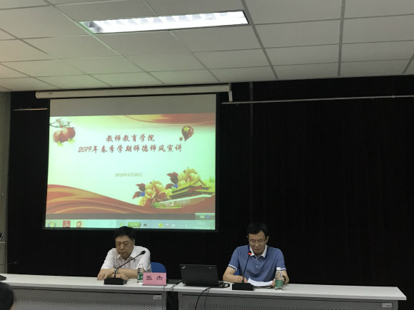 2019年师德师风宣讲会在逸夫楼210会议室举行。本次宣讲邀请到南京师范大学外国语学院教授、江苏省作家协会外委会副主任、江苏高校外语教学研究会副会长张杰教授为大家做主题为“理想为先,育人为本,方法为径”的讲座。参加讲座的有学院全体教师和全体研究生党员。