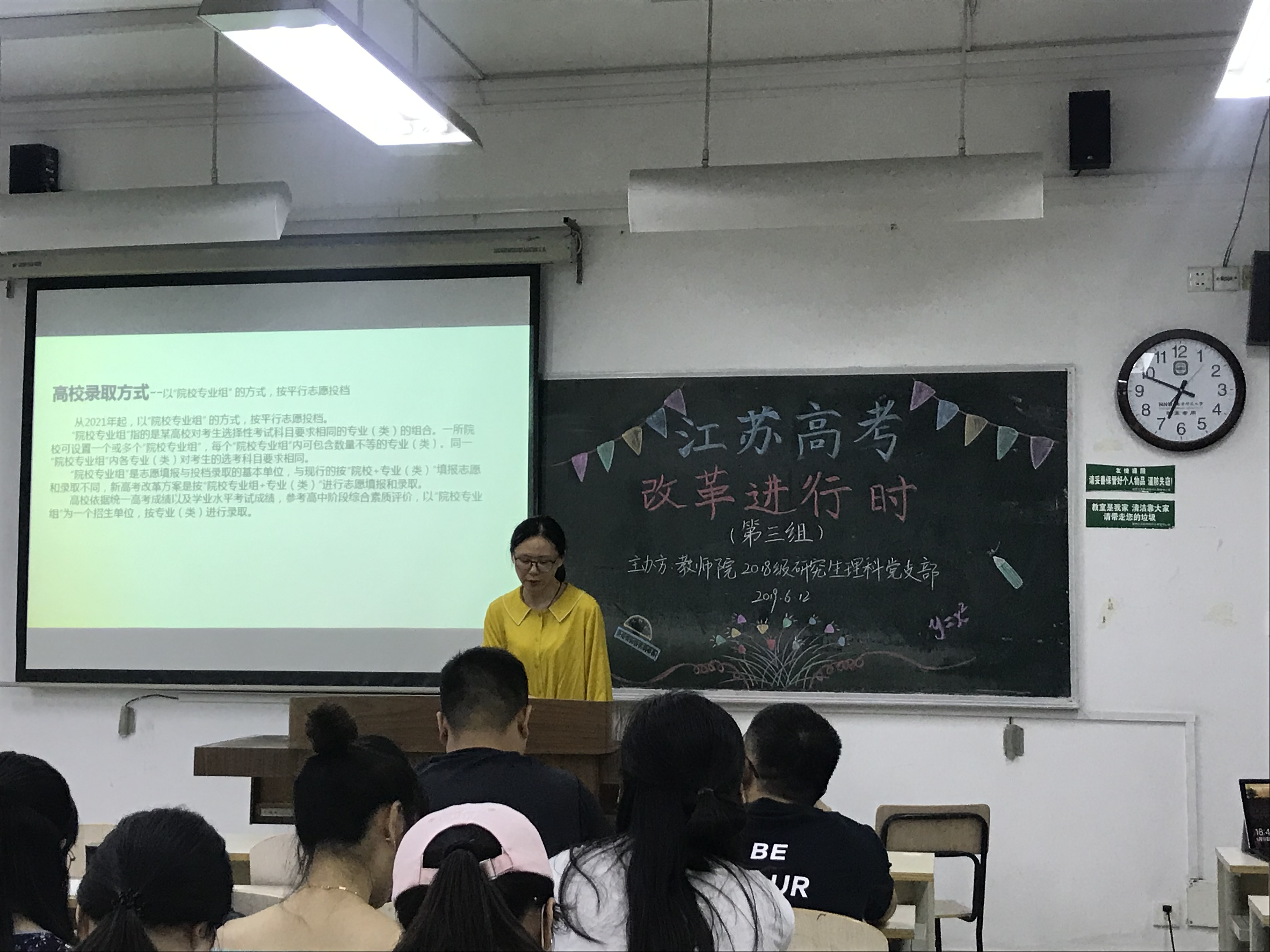 2018级研究生两年制理科党支部于仙林校区学明楼411教室顺利召开“高考改革进行时”主题交流会。本次分享会由博彩网址大全