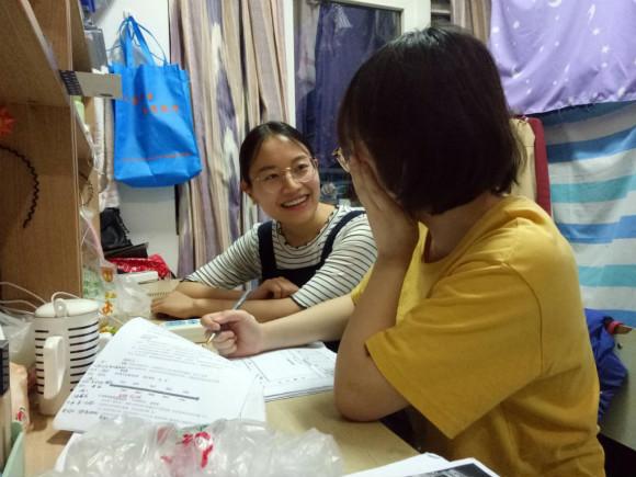 2018级两年制文科党支部的刘梦瑶、陈作青、杜灵、刘志颖、魏培锋、毕静、罗敏逸、郭家乐、叶子凡、邓淀月共10名党员同学,来到21、23栋同学寝室,开展了温暖人心的党员走寝活动。