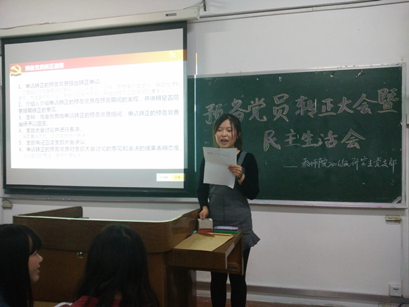 2016级两年制文科党支部转正大会于随园校区电教楼203室顺利召开。转正大会由两年制文科党支部书记申奕主持,支部全体党员参与了本次会议。