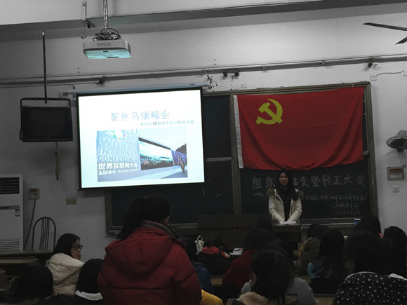 15级三年制党支部联合两年制文科党支部召开组织生活会暨预备党员转正大会。此次组织生活会的主题是“聚焦乌镇峰会”,两支部全体党员与会,两年制组织委员芮静主持此次会议。