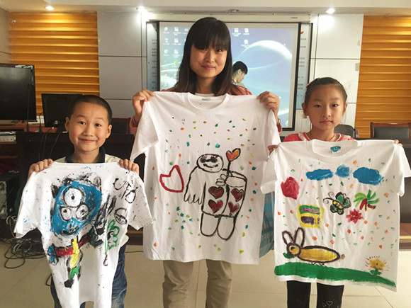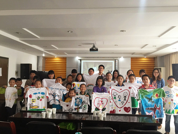 本次亲子活动由“心有千千结”心理游戏和亲子涂鸦文化衫两部分组成。首先,心理气象员组织小朋友和家长开展“心有千千结”的活动,旨在培养青少年积极面对生活的良好心态。活动中,小朋友们逐渐明白,无论以后遇到什么样的困难,只要牵着身边人的手,困难都能迎刃而解。紧接着的是,小朋友盼望已久的亲子涂鸦文化衫活动。活动一开始,小朋友和家长便认真地构思图案、选择颜料、绘制图案,有条不紊地忙碌起来。涂鸦的亲子衫图案异彩纷呈,令人赞叹不已,有可爱的多啦爱梦,有五颜六色的彩虹,有洋溢着浓郁亲情的爱心,还有幸运的四叶草......