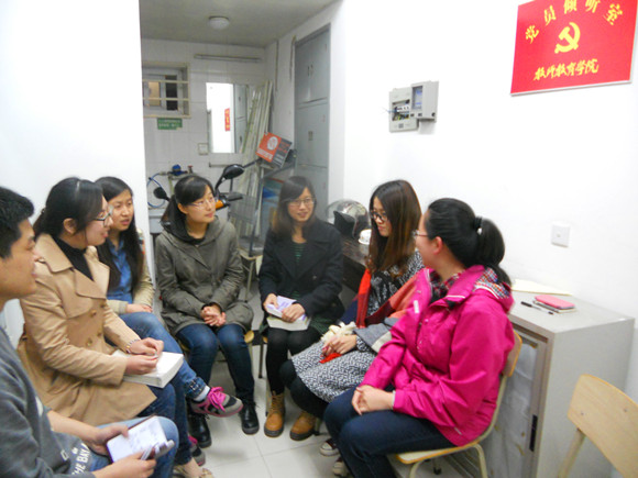 13级研究生党总支组织召开,党总支组织委员庞骏负责主持,来自教师院各专业的六名硕士研究生积极参与了交流。