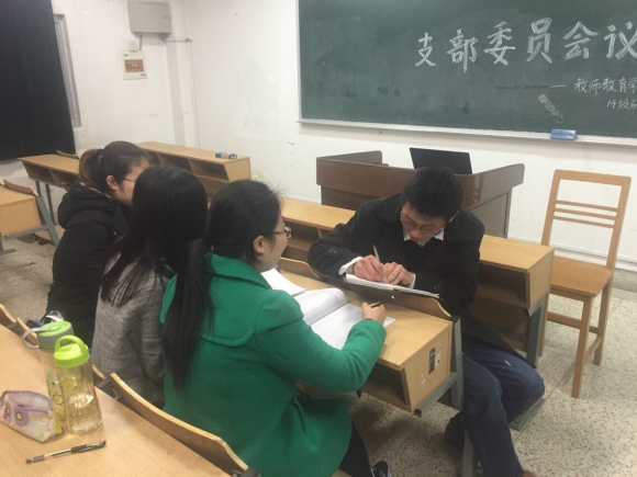 之后,在书记的提议下,支部委员又共同商议了本学期的党员主题教育活动和支部特色活动的计划。各支部委员纷纷提出了自己的建议。张家秀同学提出可以将专业特色与主题教育活动结合,赖慧珍同学建议可以做一次以环保为主题的志愿服务活动,生玥同学提出可以走出校园,将理论学习与实践相结合。