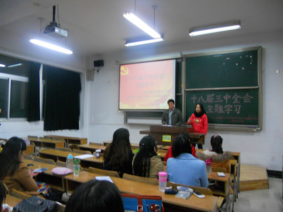 随着中共党的十八届三中全会的胜利召开,中国改革开启了新的篇章。为进一步学习领会三中全会精神,紧跟中共中央全面深化改革的步伐,12月3日晚,在南师大仙林校区北区203教室,教师院13级研究生两年制文科班党支部及三年制党支部共同召开了以学习“党的十八届三中全会”为主题的组织生活会。会议由两年制文科班支部书记庞骏及三年制支部书记孙欢主持,两支部全体学生党员参与了会议。
