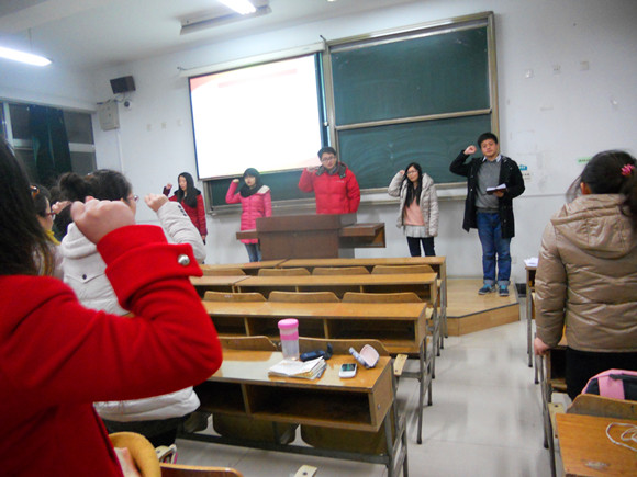 13级两年制硕士文科班党支部预备党员转正大会在南师大仙林校区北区205教室正式开始,会议由支部书记庞骏主持,支部全体预备党员及正式党员参与了会议。