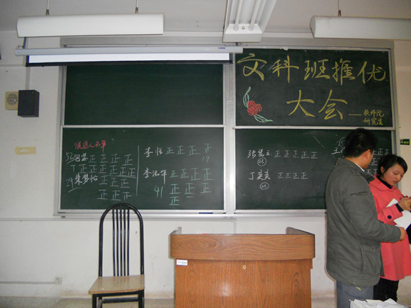 会上,文科班党支部组织委员王欣首先就本次推优大会的基本流程、推优入党的规则及人数限制等基本事项进行了说明,以促进与会同学们公平公正地对候选人员作出评价,认真负责地行使手中的推选权利。接下来,推优入党的8名候选人员依次上台进行了2-3分钟的自我陈述,候选人员主要从入党动机、对党的认识和学习、工作等方面谈了自身的基本情况和今后的努力方向。这些陈述真诚而不失活力,深刻表达了候选人员加入中国共产党的强烈愿望以及积极服务他人的希冀,从而引起了与会同学们的强烈共鸣。随后,与会同学开始进行不记名投票,由非候选人员进行唱票、计票、监票工作,整个选举过程公开、公平、公正。根据选票结果,大会最终确定了选票前4名的候选人名单,分别为王珍珍、包莹、李淑华、王晓璐4名同学,该名单将上报学院和学生党支部讨论决定最终的两名党员发展对象。