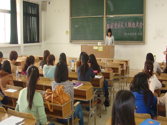 2013年5月10日星期五,教师院研究生第三党支部在北区教学楼307推选本学年党员发展对象,大会由支部书记刘亚楠主持,支部党员与预备党员出席了本次会议。