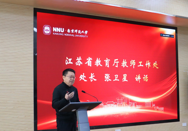 江苏省教育厅教师工作处处长张卫星、教师工作处三级调研员许李军,南京师范大学副校长张连红,学校有关部门和博彩网址大全