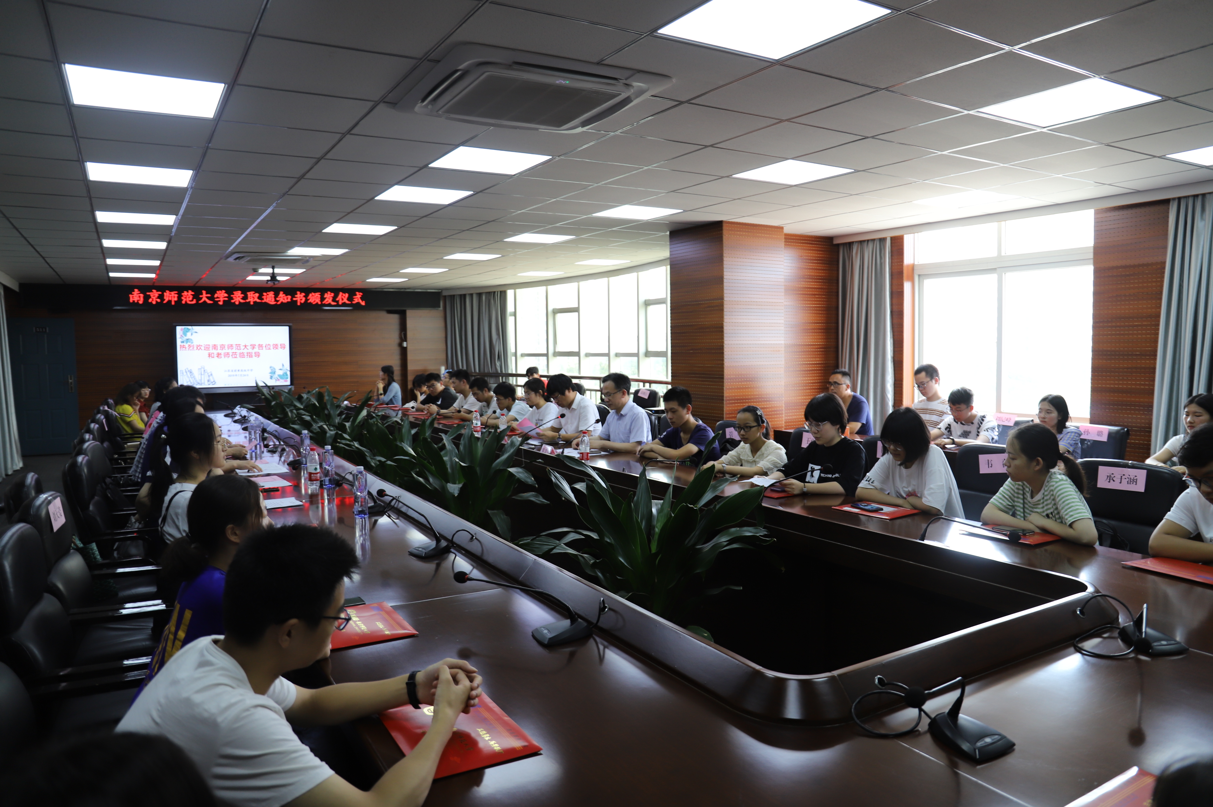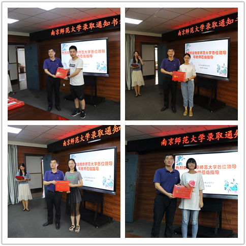 江苏省前黄高级中学副校长蔡卫东主持了颁发仪式。江苏省前黄高级中学校长黄惠涛致辞,他对南京师范大学各位领导、老师亲自前来颁发录取通知书表示欢迎和感谢,勉励考取了南京师范大学的各位同学要继续努力,再创新绩。南京师范大学教师院党委书记张杰宣读了新生名单。南京师范大学党委副书记尚洪波为38位新生一一颁发了录取通知书。