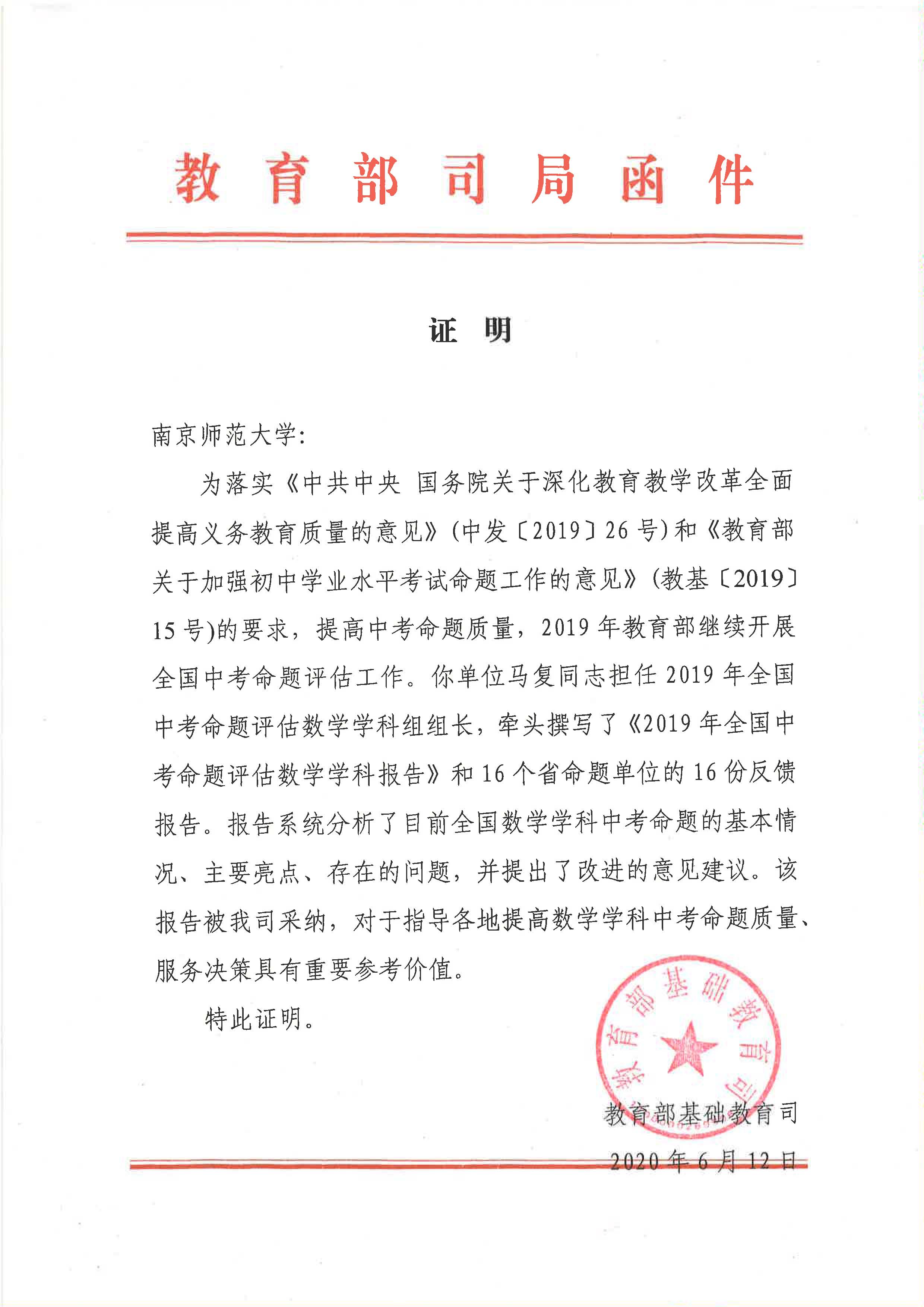 博彩网址大全 马复教授和陆建隆教授参与全国中考命题评估获教育部肯定 发布时间:2020年06月30日 12:27:39 阅读次数: 字号:[ 大 | 中 | 小 ] 背景色: 近日,教育部基础教育司致函我校,对我校教师院马复教授和陆建隆教授受邀担任2019年全国中考命题评估数学组和物理组学科组长,并牵头撰写的《2019年全国中考命题评估数学学科报告》、《2019年全国中考命题评估物理学科报告》和16个省命题单位的16份反馈报告给予了充分肯定。该报告已被教育部基础教育司采纳,对于指导各地提高数学和物理学科中考命题质量,服务决策具有重要参考价值。