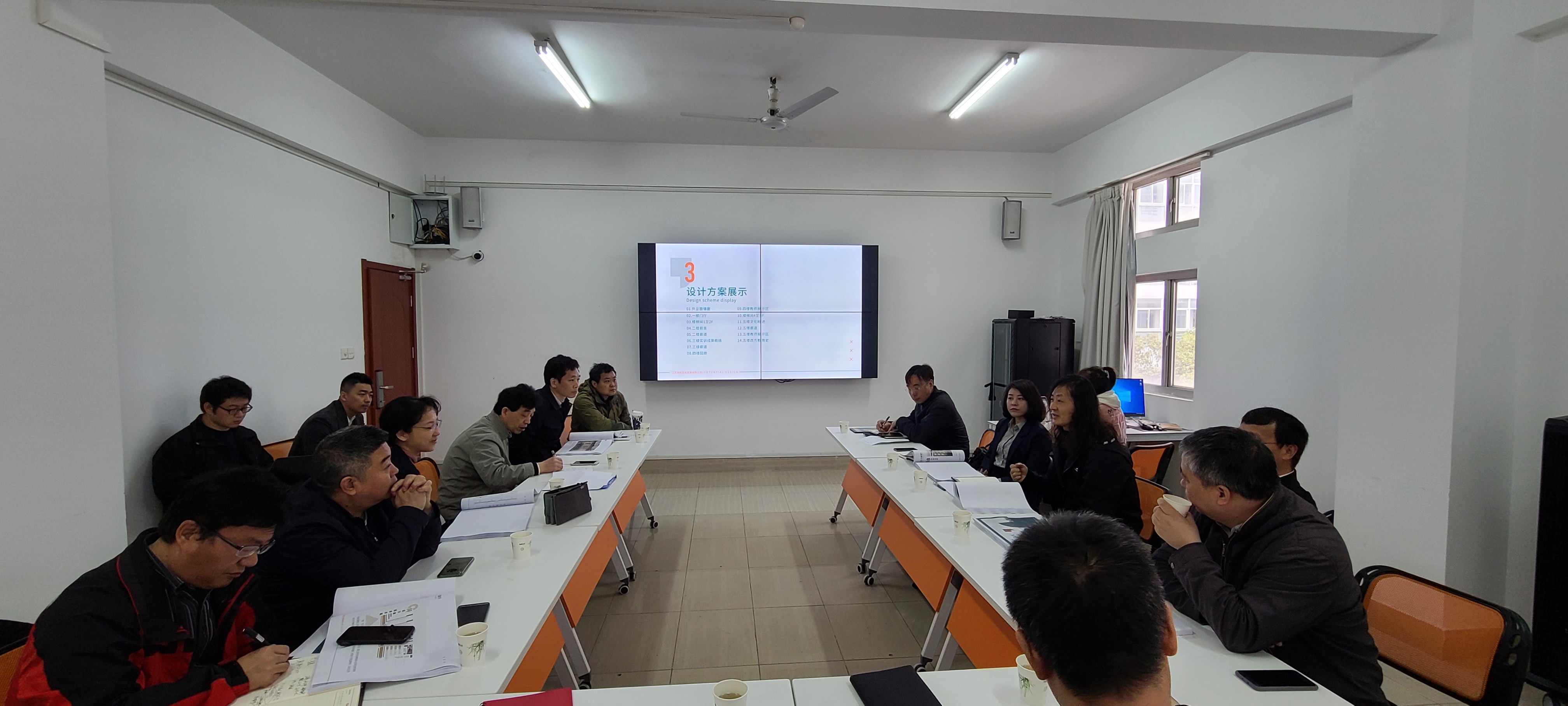 及相关设计单位从方案设计理念、需求分析、设计原则、配色方案、功能融入等方面全面汇报设计方案,并对方案设计效果进行展示。与会人员就建设方案展开了详细讨论,并从LOGO设计内涵、主题特色彰显、教师教育文化体验、设计内容凝练、空间色彩搭配等多角度提出了详细意见与建议。