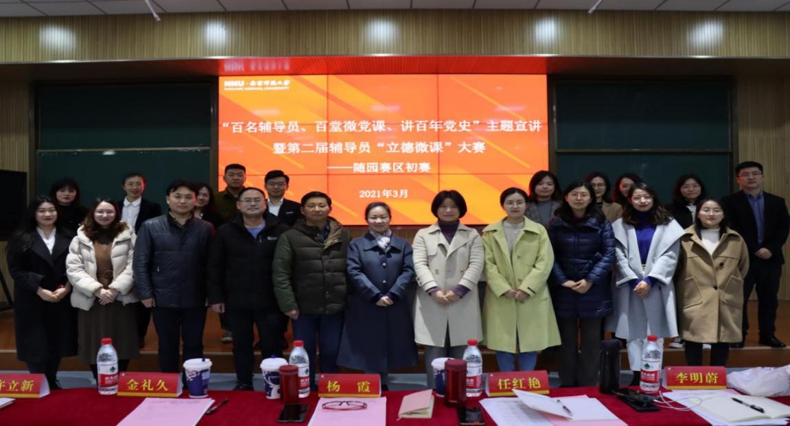 承办的校“百名辅导员、百堂微党课、讲百年党史”主题宣讲暨第二届辅导员“立德微课”大赛——随园赛区初赛,在南京师范大学仙林校区学明楼501教室成功举行。