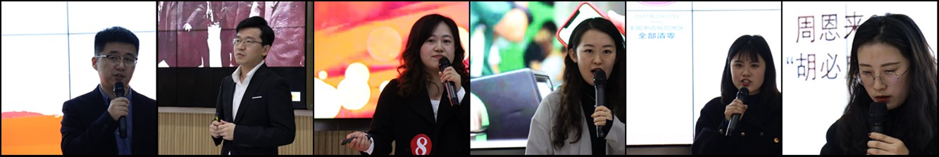 回首过往,展望未来。外国语学院的许一然老师借电视剧《山海情》带大家回顾了我国脱贫攻坚战的取得的成果,让“中国奇迹”走进青年的心。脱贫摘帽不是终点,而是新生活、新奋斗的起点。国际文化教育学院的王艺澄老师便立足于未来,从文化传播角度向我们解读了“十四五”规划和2035年远景目标。