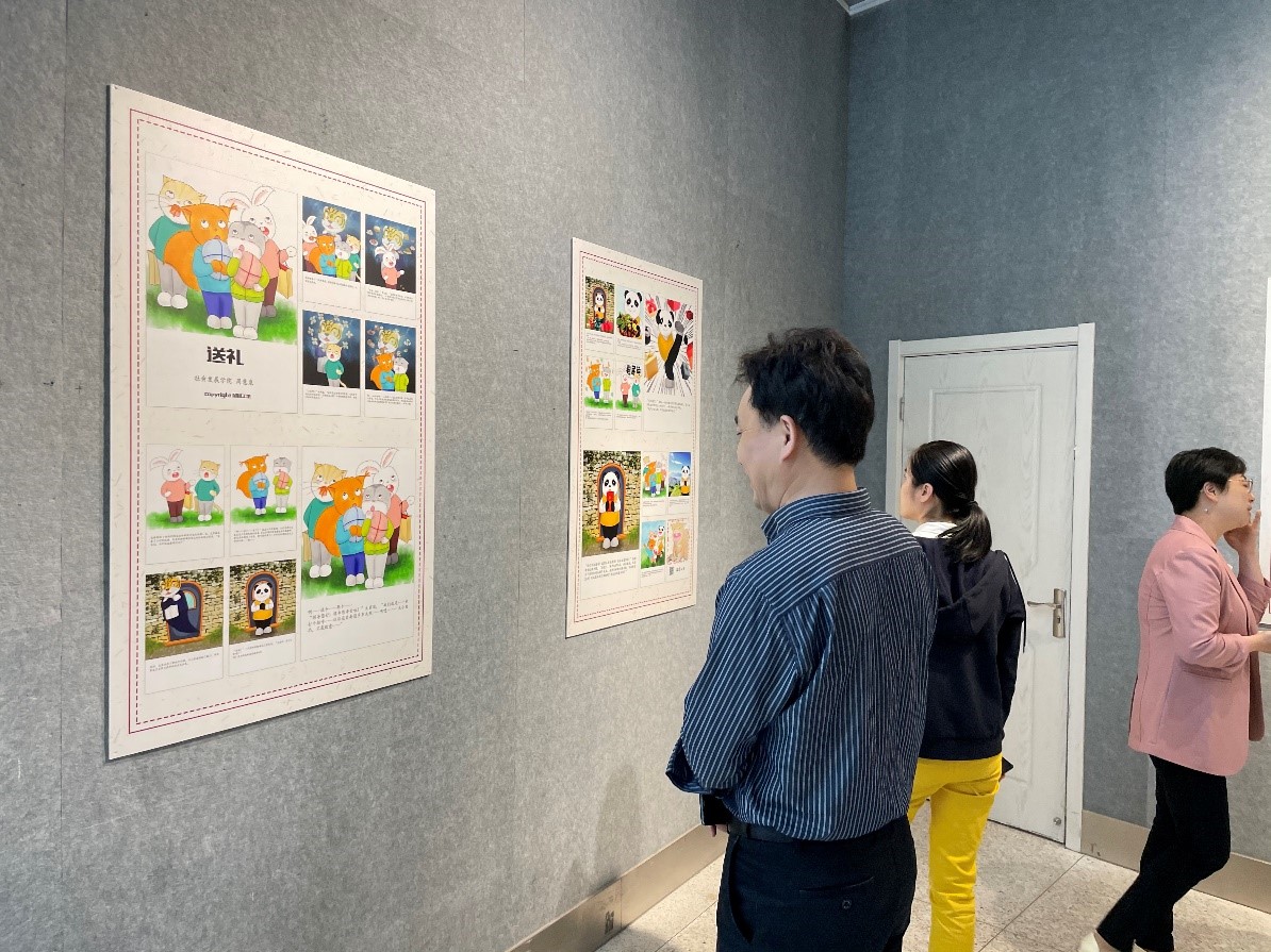 同学绘制的“莲洁与廉洁”主题绘画作品,向我们传递了坚持廉政、反对贪腐的主旨思想。再往里走,以“送礼”为题的原创绘本,图文并茂,反腐倡廉深入人心。展馆内更有刚劲有力、自然洒脱的书法作品,“谦卑自律”、“激浊扬清”、“正本清源”跃然纸上,泼墨丹青颂廉洁。