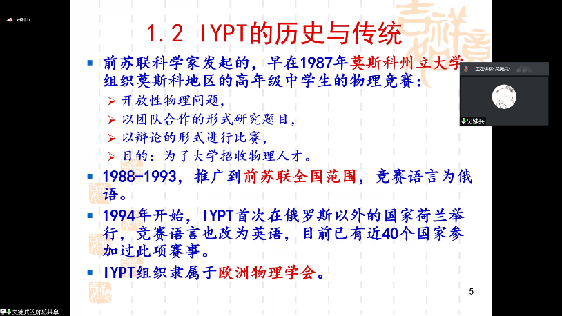 为更好地配合即将开展的“启程我的学术之路”研究生入学教育,陆建隆教授多次邀请吴时丰等优秀学长与盛宝骥等杰出中学教师到会进行专题讲座,为新生们铺好研究生道路的第一块砖。全班同学参与热情高涨,每次活动都是全员参与、汇报人准备充分,陶柏凤和陶雨辰两名同学曾因临时有事,无法及时汇报而提前录制相应的汇报视频。活动收到同学们的一致好评。