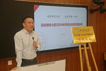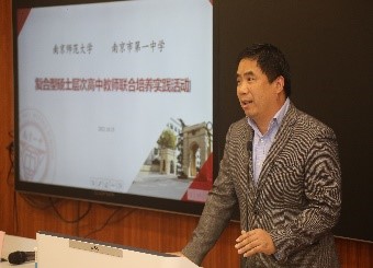 朱焱校长首先对南京师范大学各位领导、老师与学生的到来表示了热烈欢迎。朱校长介绍了南京市第一中学的基本情况,特别指出学校全体教师队伍中有六成以上毕业于南京师范大学,两校之间有着密切的关联与深厚的情感。他认为两校之间开展合作,共同承担硕士研究生的培养工作是十分有意义的事情,并指出南京市第一中学将会为学生提供丰富的实践学习的平台与机会,不断推进学生实践能力的真正提升。