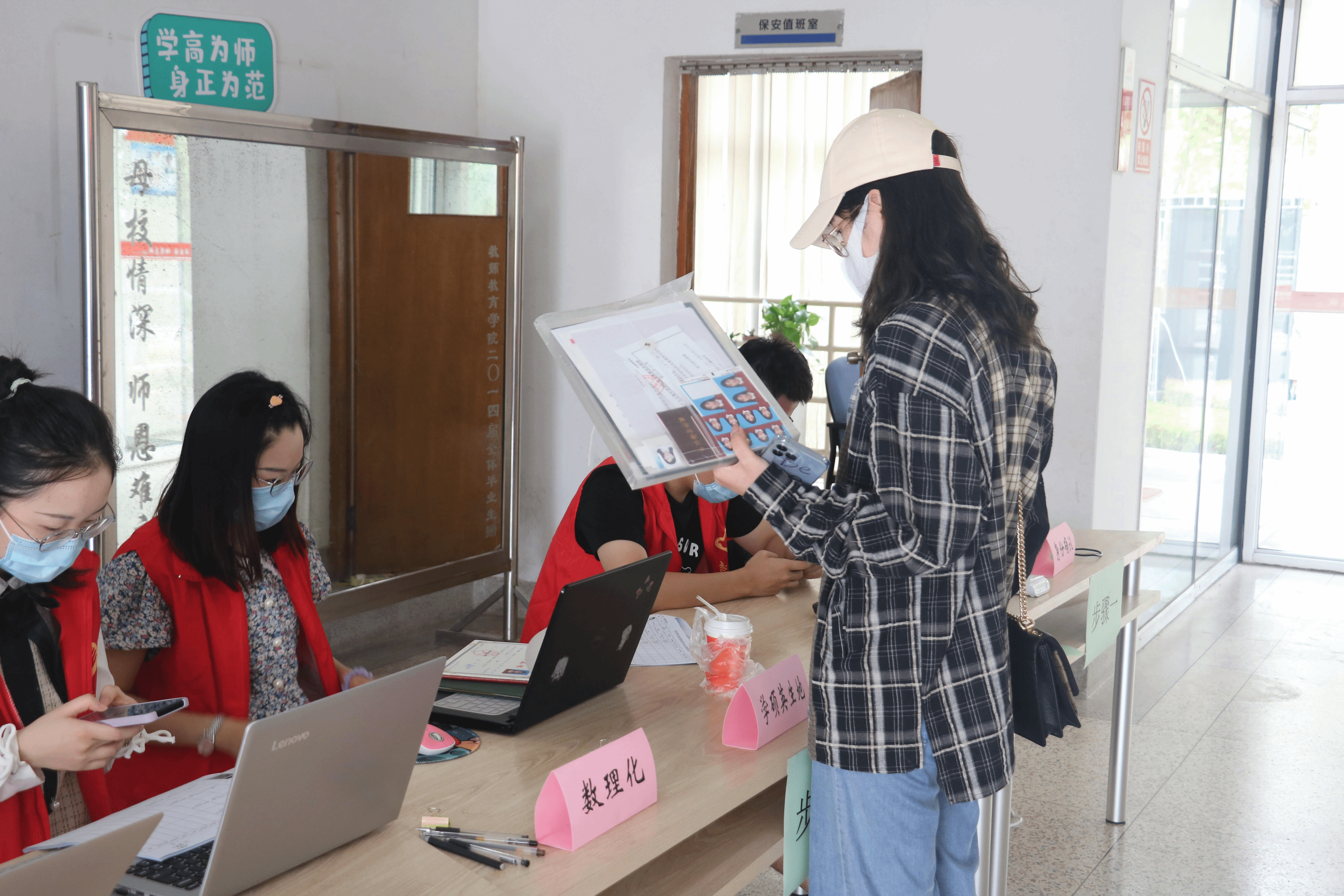 新生入住宿舍收拾完毕后到化成楼大厅进行报到。在志愿者的热情引导下,新生入学登记工作有条不紊、快捷便利地进行。各位新生出示身份证等进行身份确认,同时领取学生证、校徽及学生组织宣传单。学院实时掌握新生报道的动态数据,做好全面跟进保障工作。