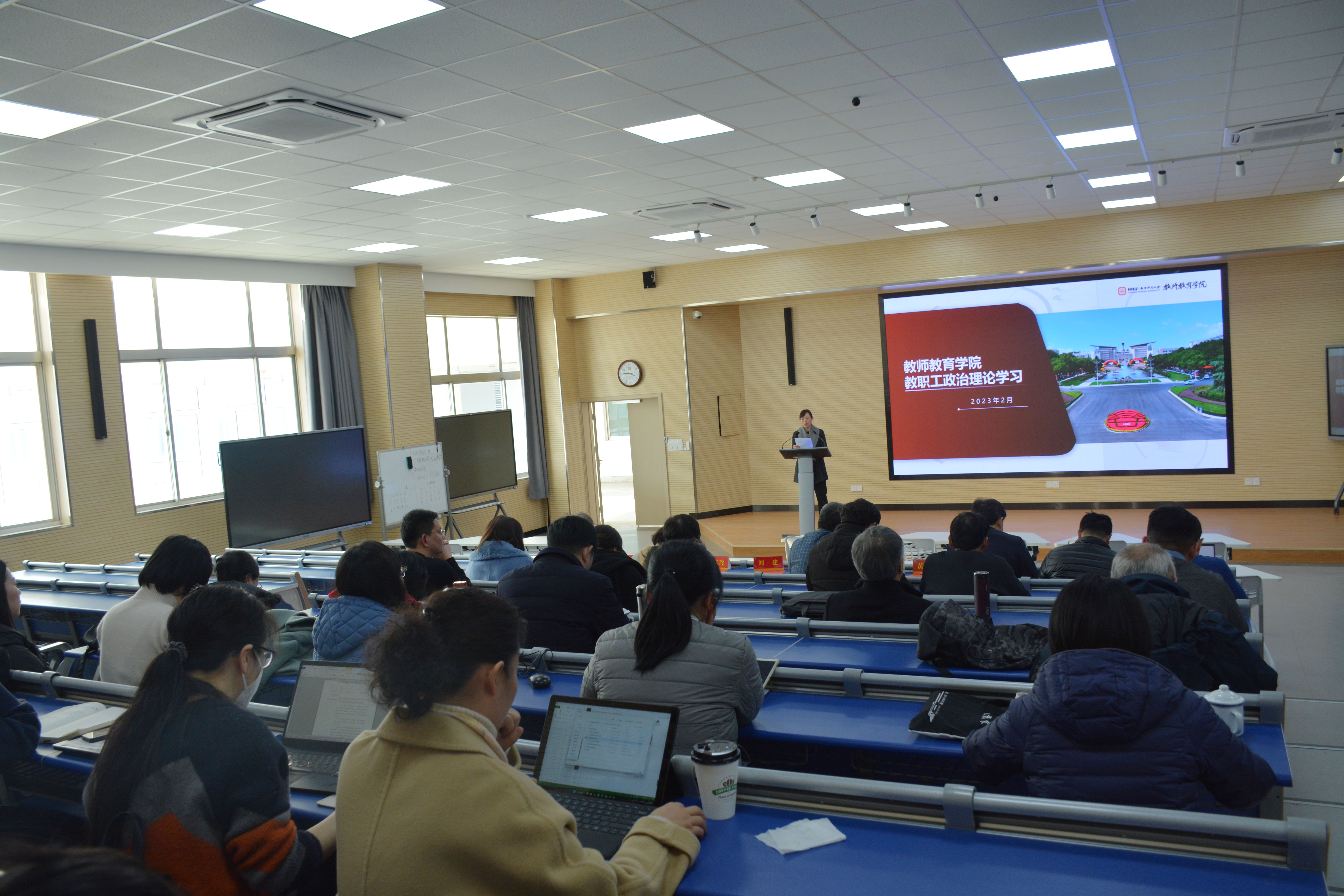 组织全体教职工开展政治理论学习。学院党委书记黄菊香主持了本次学习。学院教师认真学习领会习近平在学习贯彻党的二十大精神研讨班开班式上发表重要讲话,把思想和行动统一到习近平总书记重要讲话精神上来,统一到党中央决策部署上来,扎实抓好学院各项工作,扎实推进中国式现代化建设。