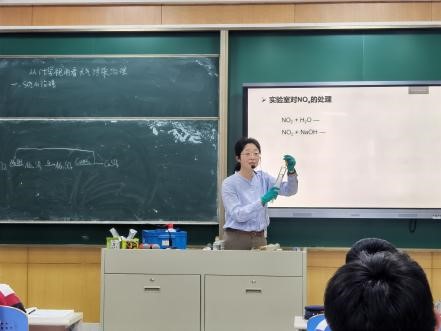 高二年级第二节课是吴萍老师的《从化学视角看大气污染治理》,这是一节氮和硫元素及其化合物的复习课。吴老师从“科学态度与社会责任”这一化学核心素养出发,聚焦大气中氮硫元素带来的环境问题,以解决酸雨和汽车尾气污染问题贯穿课堂始终,既加深了同学们对氮硫元素及其化合物知识的理解,又增强了同学们参与社会热点问题的意识,提升了同学们的社会责任感。课堂气氛较为活跃,师生配合良好,张弛有度。