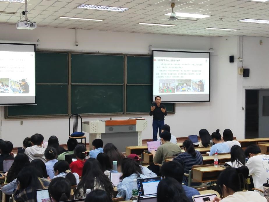接着,柯老师指出教师应当满怀仁爱之心,培育每个孩子,做“孩子心灵的陪伴人”。柯老师说,2007年以来,他几乎每年都负责高三年级成绩最差的分流班学生的教学,他用身边事例鼓励学生,用科学趣味的教学吸引学生,引导学生找到自信、重塑人生目标,让那些曾经被遗忘的孩子绽放生命之花。柯老师用朴实无华却十分真挚的语言道出了陪伴对学生的重要性。