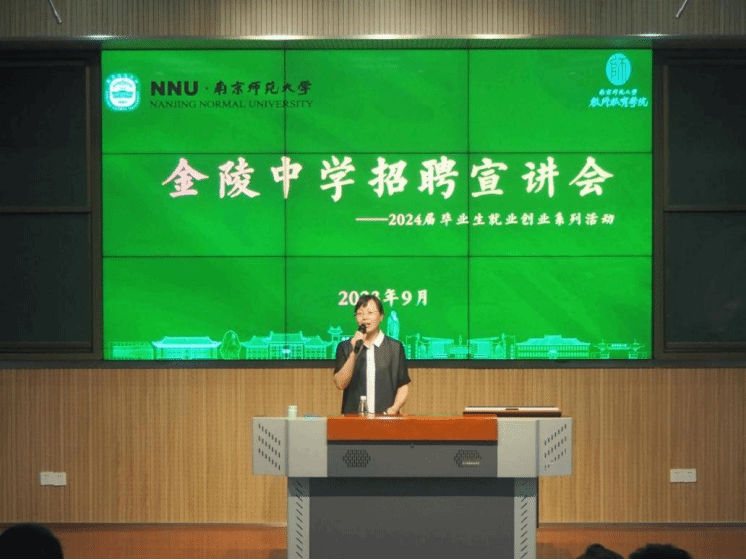 宣讲会的尾声,金陵中学朱文迪老师向大家详细地介绍了招聘详情,并再次向在场的同学发出诚挚的邀请,欢迎大家加入金陵中学,现场反响热烈。