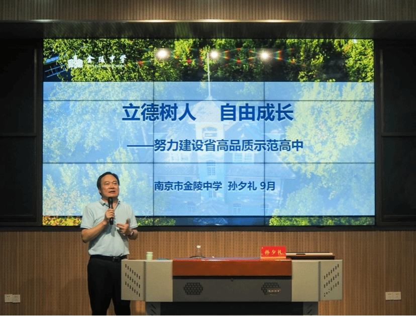 在同学们的阵阵掌声中,金陵中学招聘宣讲会正式开始。首先,金陵中学的孙夕礼校长回顾了自己与母校南京师范大学的渊源,并对自己的教育工作生涯进行了简要介绍。随后,孙校长从金陵中学的发展历程、著名校友、教育理念、办学特色、学校荣誉以及对青年教师的培养计划等方面向同学们全方位展示了金陵中学作为一所百年名校的魅力与风采。其中,孙校长对金陵中学“开放办学、科学管理、内涵发展、张弛有度、自由成长”的教育生态,以及对“科技创新教育、课程资源的融合贯通、身体与心理健康教育、实践教育、信息技术与大数据的支撑”的课程实施特色的精彩讲解,让同学们深刻感受到金陵中学别具一格的办学理念。最后,孙校长向同学们分享了自己的教育感悟:“做教育的明白人,做明白教育的人,做深耕教育的人,做感恩教育的人。”