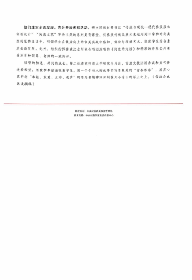 2024年1月5日,中央纪委国家监委内网以《南京师范大学第二批支教团用梦想照亮大小凉山孩子》为题,对我校研究生第二批四川支教团的事迹进行了宣传报道。