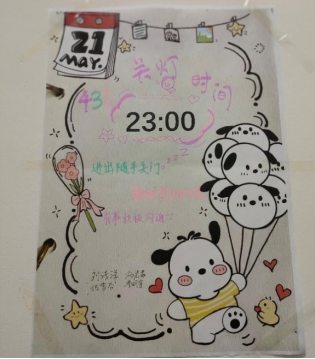 在检查过程中,检查组发现大多数学生宿舍整洁干净,物品摆放有序。这表现出同学们良好的生活习惯和卫生意识。同时,同学们也积极响应学院的号召,以“宿舍安全”为主题,对宿舍进行了个性化的装饰与布置。有的宿舍张贴了安全警示标语,提醒同学们注意用电安全;有的宿舍为了确保寝室的安全与和谐,在民主商议后制定了“宿舍公约”;还有的宿舍设置了文化墙,展示了同学们的才艺和创意。